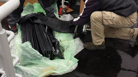 For når slangen er på plass kobles den til en spesiell kompressor- og dampmaskin som først blåser opp slangen. Trykket er minimalt for å ikke legge press på en allerede skjør kanal, bare 0,2 bar, men stort nok til at slangen former seg etter den eksisterende kanalen. Når slangen er blåst opp blir den «dampet» og varmet opp, noe som får komposittmaterialet til å herde.